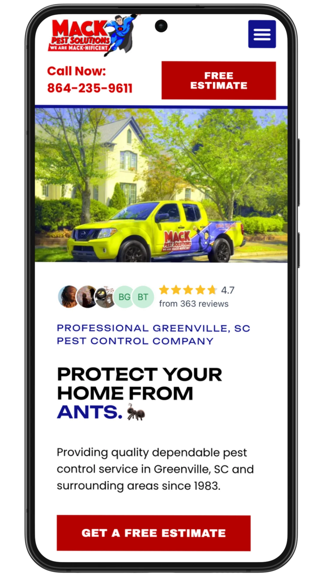Transform your online presence with features built for pest control success:Mobile-first responsive design
