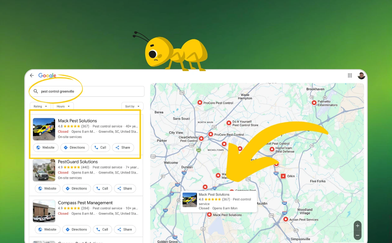 Dominate local search results and capture high-intent customers actively looking for pest control services.